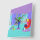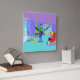 Brrr... Este reloj de pared de vacaciones de esquí retro te hará buscar un San Bernardo con un barril de brandy. El moderno dibujo personalizado de mediados de siglo cuenta con una pareja glamurosa cubierta en un colorido chalé de esquí con unas vistas magníficas. El suelo es de color turquesa y las paredes son violetas. ¡Eh, son los 60! Los ventanales del suelo al techo revelan montañas cubiertas de nieve, un cielo turquesa con nubes azul claro y las siluetas de gente feliz que se pasean en las góndolas del remonte. En el interior de la habitación se ve un verde oliva, una chimenea de conos con una chimenea encendida. En el suelo hay dos esquíes amarillos al lado de los postes de esquí. En el centro de la habitación, un hombre guapo de pelo negro lleva pantalones azules y un suéter verde de cuello alto. Lleva una bandeja de martinis. Un brazo se extiende, ofreciendo un martini a la mano de espera de una mujer rubia. La mujer está sentada en una silla roja de huevo. Lleva pantalones azul marino y un suéter rosado caliente. Por favor, perdónenla por no levantarse, ¡pero tiene un elenco en una pierna!