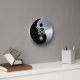 reloj de pared de yin yang plateado y negro