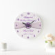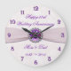 Diseño de imágenes Digitalbcon con un tema de diseño de color púrpura y damasco en este reloj de pared "Amethyst Boda Aniversario", único en su clase. Este diseño colorido y elegante se completa con los contrastantes números de las caras del reloj de color amatista para indicar la hora, así como las letras de texto del personalizable para adaptarse a su propio diseño especial y saludos!