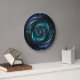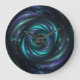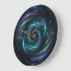 Reloj de pared de encargo con el arte digital que ofrece un espiral de Arquímedes de la fantasía en la aguamarina y la púrpura. Las marcas de la hora son números romanos y pueden ser cambiadas a los números árabes o al texto.