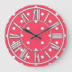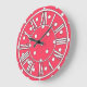 Reloj de pared del rojo cereza (tiene un tacto del rosa) con los puntos blancos y los números romanos. Cuelgúelo en la biblioteca, la guarida, la casa de playa, o la oficina. Este reloj haría un estreno de una casa o el boatwarming (o una casa flotante único que se calienta) regalo. Disponible en dos tamaños del reloj redondo, o un reloj cuadrado. Diseño de Copyright Scarebaby.