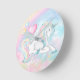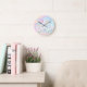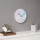 Reloj del unicornio con unicornio en colores pastel pequeño y corazones en un fondo en colores pastel hermoso de la acuarela. Este reloj del unicornio se puede modificar para requisitos particulares con el texto.
