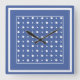 El Wall Clock, cuadrado y muy elegante, está decorado en un azul oscuro (monegasco) de diseño con puntas de polka blanca y rayas.