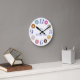 El blanco hermoso coloreó el reloj de pared con diseños ilustrados lindos del buñuelo.
