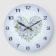 Hermoso reloj de pared floral del corazón azul