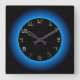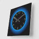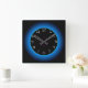 Reloj de pared iluminado azul/agua sobre negro
