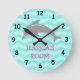 Reloj de pared infantil con forma de delfín gris y patrón de chevron. Diseño de vectores de animales marinos con fondo de zag azul turquesa. Agregue su propio nombre personalizado de hijo. Ducha de bebé única o idea de regalo de embarazo para recién nacido y madre / padres. Decoración y decoración personalizado para el dormitorio de los niños. Impresión de zigzag con tipografía rosa, pescado y placa de marcado numerado.