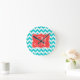 Moderno Aqua Coral Chevron Zig Zag Tejido Patrón de impresión Monograma Reloj de pared inicial Personalizado