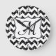 Moderno Purpurina negro Chevron Zig Zag Stripe Patrón de impresión de tela Monograma reloj de pared inicial Personalizado