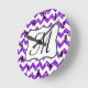 Moderno Purpurina púrpura Chevron Zig Zag Tejido Patrón de impresión Monograma Reloj de pared inicial Personalizado