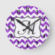 Reloj de pared inicial del monograma púrpura moder