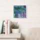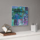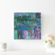 Un original cuadro acuático abstracto de Anne Ormsby de hojas con un dicho inspirador adorna este reloj de pared.