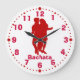 ¡Este reloj de pared de encargo único es perfecto para los amantes latinos de la danza que piensan son en cualquier momento la época perfecta para el baile del bachata! El reloj tiene una silueta roja de un par que hace un movimiento del baile del bachata. Dice "Bachata" en la parte inferior. Usted puede cambiar esto en la plantilla si usted quiere. Hay puntos rojos para los minutos, y números rojos.