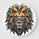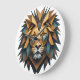 Ilustrar una cabeza de león geométrica en un estilo de baja polilla, dándole al logo un aspecto moderno y minimalista. con fondo de color claro para el reloj de pared