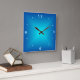 Un centro de luz acuatico/azul muy liso iluminado con borde azul más oscuro hace que este reloj de pared sea una pieza interesante y relajante.Los números azules claros completan el diseño. Ideal para un reloj de cocina, regalo de boda o compromiso o para cualquier ocasión.Nota: ¡Este diseño no es un producto led! Pero disfrutaras de este reloj ! Jilly
