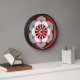 Reloj De Pared Mandala de flores Lotus, rojo oscuro, gris y blanc