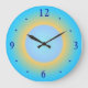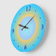 Un reloj de pared amarillo azul del modelo del círculo de la aguamarina moderna de moda. Esto reloj iluminado destacado tiene números del azul real. Disponible en dos tamaños redondos