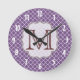Lavender Cuarterfoil Relieve metalizado de cuarzo Monograma Personalizado personalizado inicial Tela patrón de pared reloj de pared