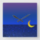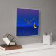 Un grabado de arte vintage de una noche estrellada con una luna creciente brillante sobre un fondo de azul y violeta. Haga clic en Personalizar para agregar su nombre o mensaje.