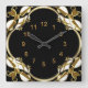 Reloj de pared Oro negro Banda floral blanca