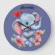 Este adorable ilustracion Baby Elephant Wall Clock, de fondo azul, rodeado de flores y corazones, hará una hermosa adición a cualquier habitación infantil. Le añadirá un toque de alegría y cortesía a cualquier habitación en la que lo coloque. Entonces, ¿por qué conformarse con un reloj simple y aburrido cuando se puede tener uno que sea funcional y lindo? ¡Trae tu reloj de pared de elefantes de bebé hoy!