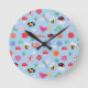 Un reloj de pared brillante y alegre para niños que presenta insectos lindos, abejas, mariquitas, flores y mariposas en un suave fondo azul — perfecto para una divertida decoración de guardería o sala de juegos.