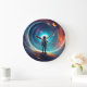 Eleva tu decoración con este impresionante reloj de pared que combina arte y funcionalidad. Con un diseño cautivador de una persona de pie con los brazos extendidos, rodeado por un giro cósmico de colores vivos y elementos celestes, este reloj es una obra maestra visual. La cara, elegante y redonda, está colocada contra una pared de cizalletas blancas, lo que le da un toque de elegancia a cualquier habitación. Perfectamente posicionado sobre una pequeña mesa adornada con libros y una maceta de lavanda, este reloj no sólo cuenta el tiempo sino que también sirve como una pieza de arte única que inspira asombro e imaginación. Ideal para salas de estar, habitaciones u oficinas, este reloj de pared combina funcionalidad y atractivo estético.