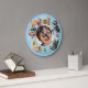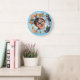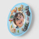 Este adorable y vibrante reloj de pared personalizable es la adición perfecta para el dormitorio o sala de juegos de cualquier niño. El reloj cuenta con un marco circular azul claro adornado con encantadores y divertidos gatos de dibujos animados en estilo 3D que representan cada hora. Desde un gato somnoliento acurrucado en la luna para las 7, hasta un gato juguetón con una bola de estambre para las 12, y un gato chef que sostiene orgullosamente un pez para las 4, estos personajes alegres hacen que aprender a decir la hora sea divertido. Los números grandes y coloridos (1-12) son fáciles de leer. Lo mejor de todo es que el centro del reloj se puede personalizar con una foto de su hijo y su nombre (como "Andy" en el ejemplo). Este reloj único sirve como decoración funcional y un recuerdo preciado, fomentando la puntualidad con una sonrisa