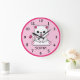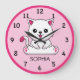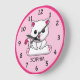 Personalice este reloj de pared lindo para niños con el nombre de su hijo. Números grandes fáciles de leer rodean a un gatito bebé sonriente. Gran regalo para un padre nuevo o para un niño pequeño. Color suave rosa en la cara del reloj.