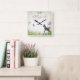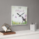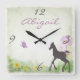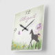 Reloj de pared personalizado del potro, de la mariposa y de las flores del caballo de la silueta.