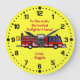 Este reloj de pared modificado para requisitos particulares diversión es el regalo perfecto para su marido o novio del bombero. Tiene un diseño con un coche de bomberos de la escalera o de la autobomba del dibujo animado. Usted puede cambiar el color de fondo o el color de la fuente si usted quiere.