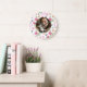 Mantén el ritmo mientras mantienes a tu felino favorito en primer plano. Este hermoso reloj de pared personalizado es la pieza definitiva para la casa de cualquier amante de los gatos. Con un delicado patrón de rosa en acuarela y huellas de patas, combina sin problemas la decoración elegante del hogar con un toque personal conmovedor.