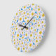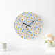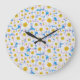 Un reloj de pared muy bonito, redondo, con un tibio patrón de margaritas blancas en un fondo azul cielo. Este patrón se ajustará a todos los tamaños de reloj. Parte de la colección "Daisy Chain" de Posh & Painterly.