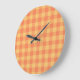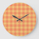 Un reloj de pared de moda con un patrón de Naranja de dos tonos Check Gingham que se coordina con la colección "Naranja Fizz" y se ajusta a la cuadrada o al reloj de pared redondo.
