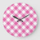 Reloj de pared redonda: rosa, blanco Check Gingham