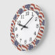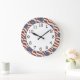 Celebre su lado patriótico con este reloj de pared redondo que ofrezca un modelo de repetición decorativo de banderas americanas en blanco y azul rojos.