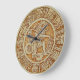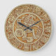 Diseño de reloj de pared redondo inspirado en antiguos glifos mayas aztecas encontrados en las ruinas de México. Tienda WitchesHammer, Virginia Vivier, diseñadora del reloj.