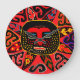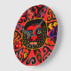 Diseño de reloj de pared brillante, colorido y soleado inspirado en textiles indios Kuna hechos en las Islas San Blas de Panamá.
