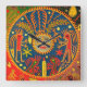 Reloj de pared ritual, chamán huichol, arte tribal del suroeste, pintura mexicana de estambre, ritual de fertilidad huichol, sol huichol del suroeste, Virginia Vivier, arte popular vagabundo, reloj de pared de acrílico, reloj de pared cuadrado, operado por batería, arte popular huichol, arte independiente, decoración boho.
