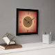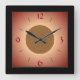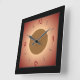 Un reloj atmosférico con borde negro y centro amarillo/tan/rojo iluminado