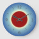 Un diseño simplista llamativo con un centro redondo rojo y un borde iluminado azul y amarillo. Este reloj minimalista tiene números romanos negros. Disponible en formas cuadradas y redondas.