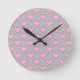 Reloj de pared con los corazones rosados en fondo gris.