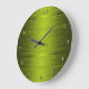 Este brillante reloj circular en tonos verde mosca y oliva alegrará la pared de cualquier habitación en la que esté visible.