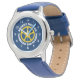 reloj de personalizado con diseño de placa de la comisaría amarilla. Relojes de muñeca personalizados para niños. Idea única de regalo de cumpleaños para niños y chicas. Crea uno para el futuro policía, hijo, nieto, sobrino, hermano pequeño, hermano pequeño, hija, nieta, primo, amigo, hijo, nieto, hermanita pequeña o grande, etc. Regalos temáticos divertidos para futuros oficiales, agentes, guardias de seguridad, comisarios adjuntos o agentes secretos. También es genial como regalo de Navidad para las fiestas. Incluye banda de color azul. Para proteger y servir. Genial para juegos de policías y ladrones.