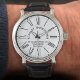 Elegante reloj con inscripción para celebrar el 30 cumpleaños. El destinatario tiene 30 años. Incluye el nombre de la persona que tiene un cumpleaños. Texto negro en la cara de un reloj blanco.