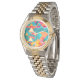 El reloj es bonito y vistoso, la maquinaria es débil y al tener varios modelos ya le he tenido que cambiar dicha maquinaria por otra mejor, pero en conjunto es un artículo muy válido para uno mismo o para un regalo. Sale muy bien siguiendo al pie de la letra las indicaciones cuando se está diseñando el motivo que va a llevar.