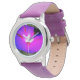 La cara del reloj está iluminada con la flor violeta rosada Morning Glory contra una valla de madera. Las vibrantes, delicadas, pequeñas bellezas hacen de esto un reloj especial. ¡Su color complementa a la banda morada también! Pero puedes comprar el reloj con cualquier banda de color que prefieras. ¡Gracias por comprar con nosotros en GloriousGloriesGifts!