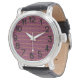 Este reloj masculino tiene un diseño art deco de semicírculos y líneas que parecen un amanecer de oro en un campo de berenjena. ¿Quieres colores diferentes? Mándame un mensaje.