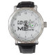 Amar el texto de MEow y un dibujo de un gato gracioso con ojos verdes. Gracioso reloj de pulsera para cualquiera.