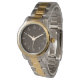 Este reloj elegante presenta una cara de color claro y números blancos.